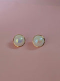 Step into subtle elegance with the Ethereal Glow Studs, crafted with luminous opalescent stones set in a sleek golden frame.