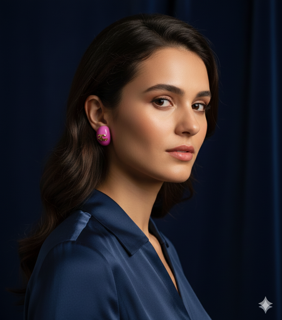 Glossy pink oval stud design