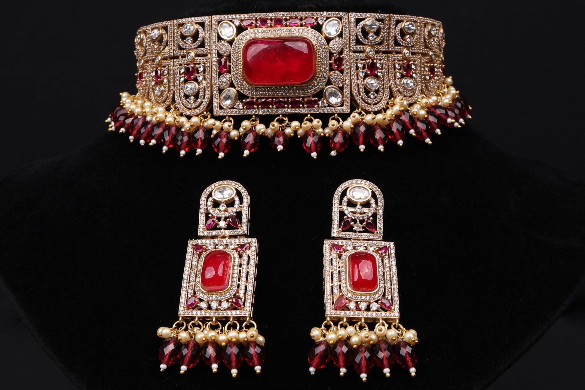 Premium Regal Kundan Ruby Choker Necklace and Earring set