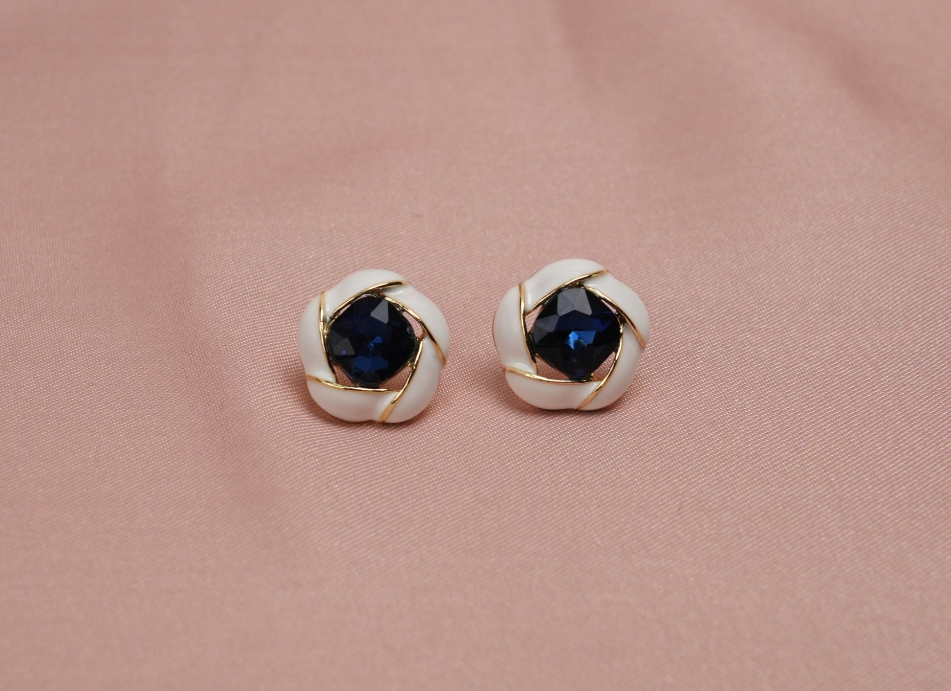 Elegant and eye-catching, this Blue Crystal Jewelry Set is designed to make a statement. The set features a brilliant deep-blue crystal framed in glossy white enamel with golden accents, creating a stunning contrast. Includes a matching pendant necklace and stud earrings, perfect for adding sophistication to any look.