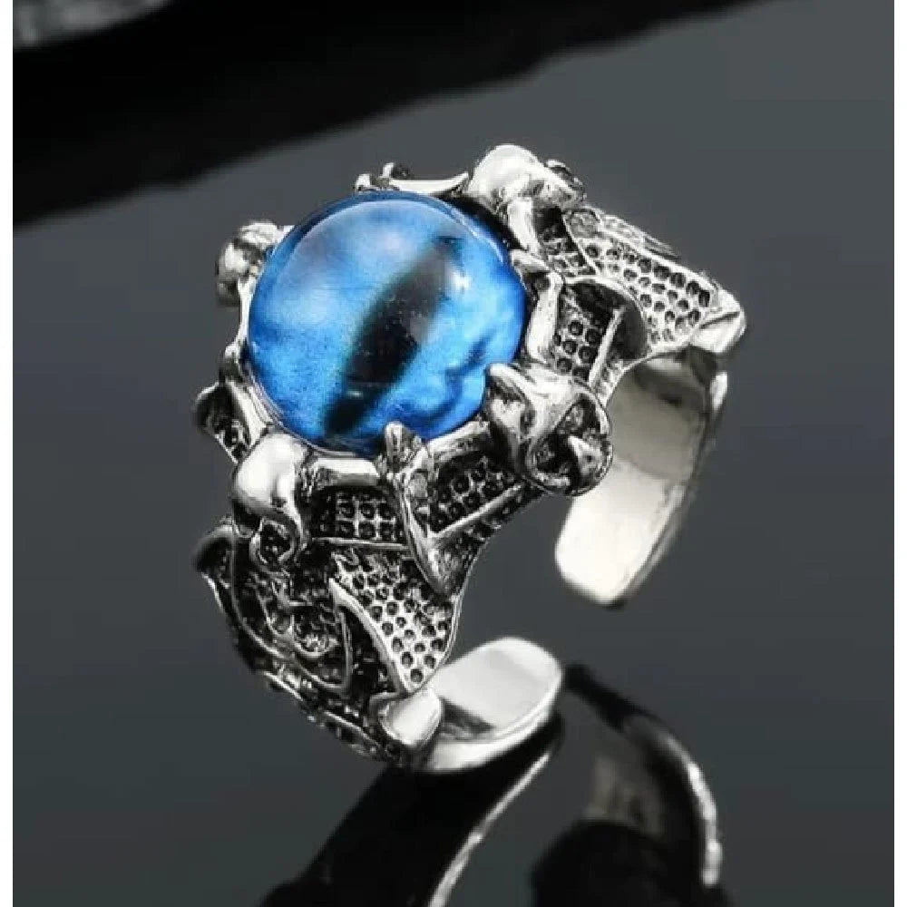 Unleash ancient energy with the Celestial Blue Dragon Eye Ring β a spellbinding piece for lovers of fantasy and bold fashion. The glowing sapphire-blue eye at the center commands attention, enclosed in a dramatic setting of dragon claws and gothic textures. Whether you wear it as a mystical talisman or a fashion statement, this ring is made to ignite your inner fire.
