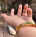 Gold-toned kada bracelet for men featuring engraved Om symbols. Elegant, spiritual, and perfect for everyday wear or festive gifting.