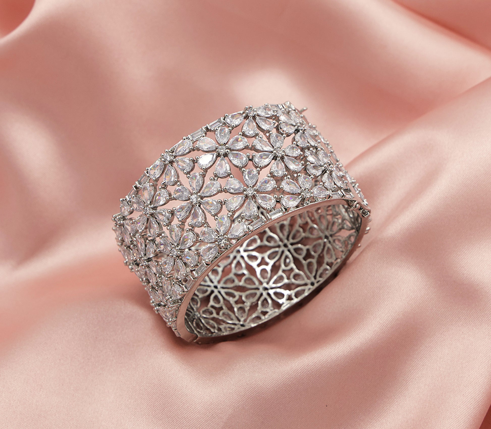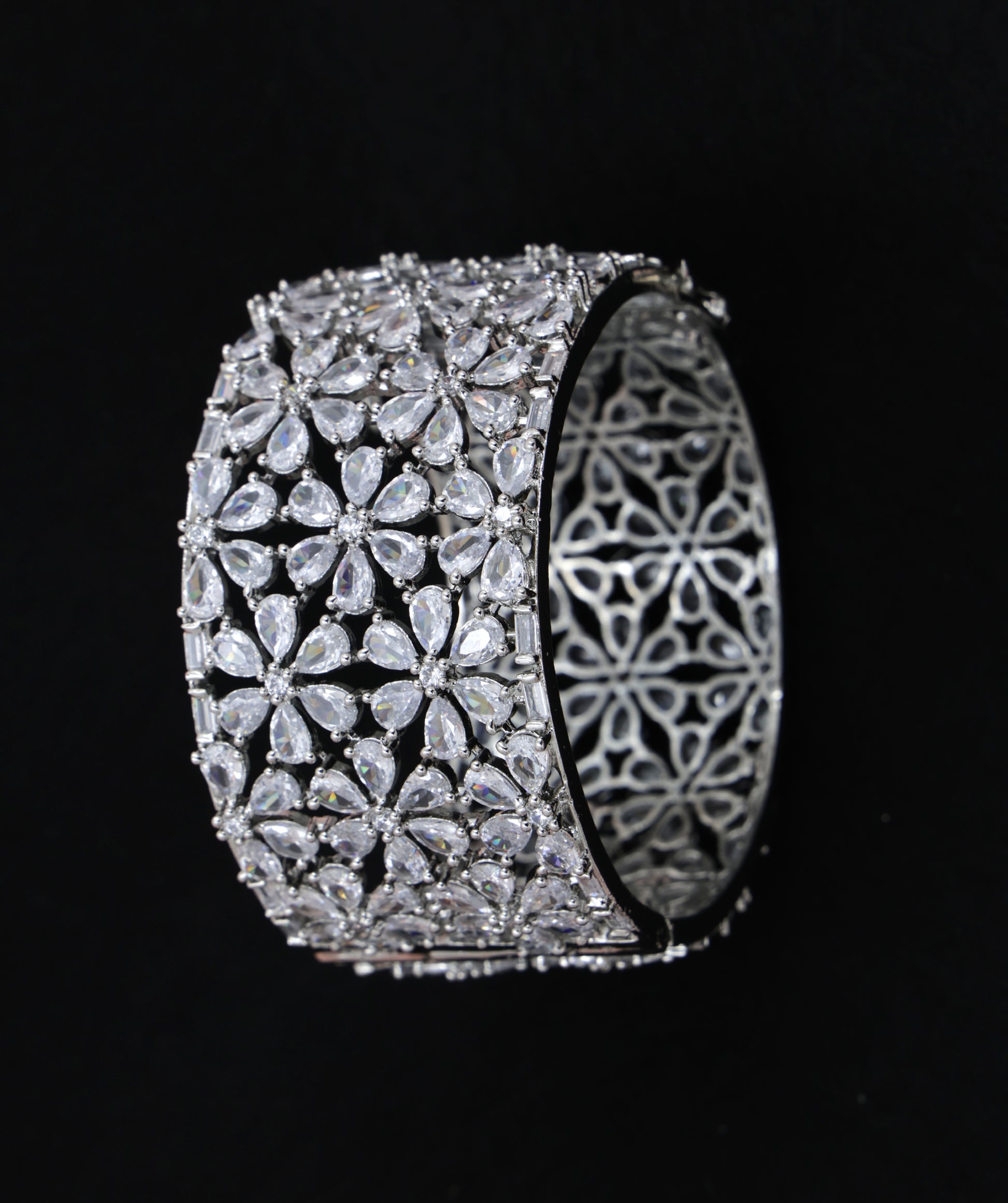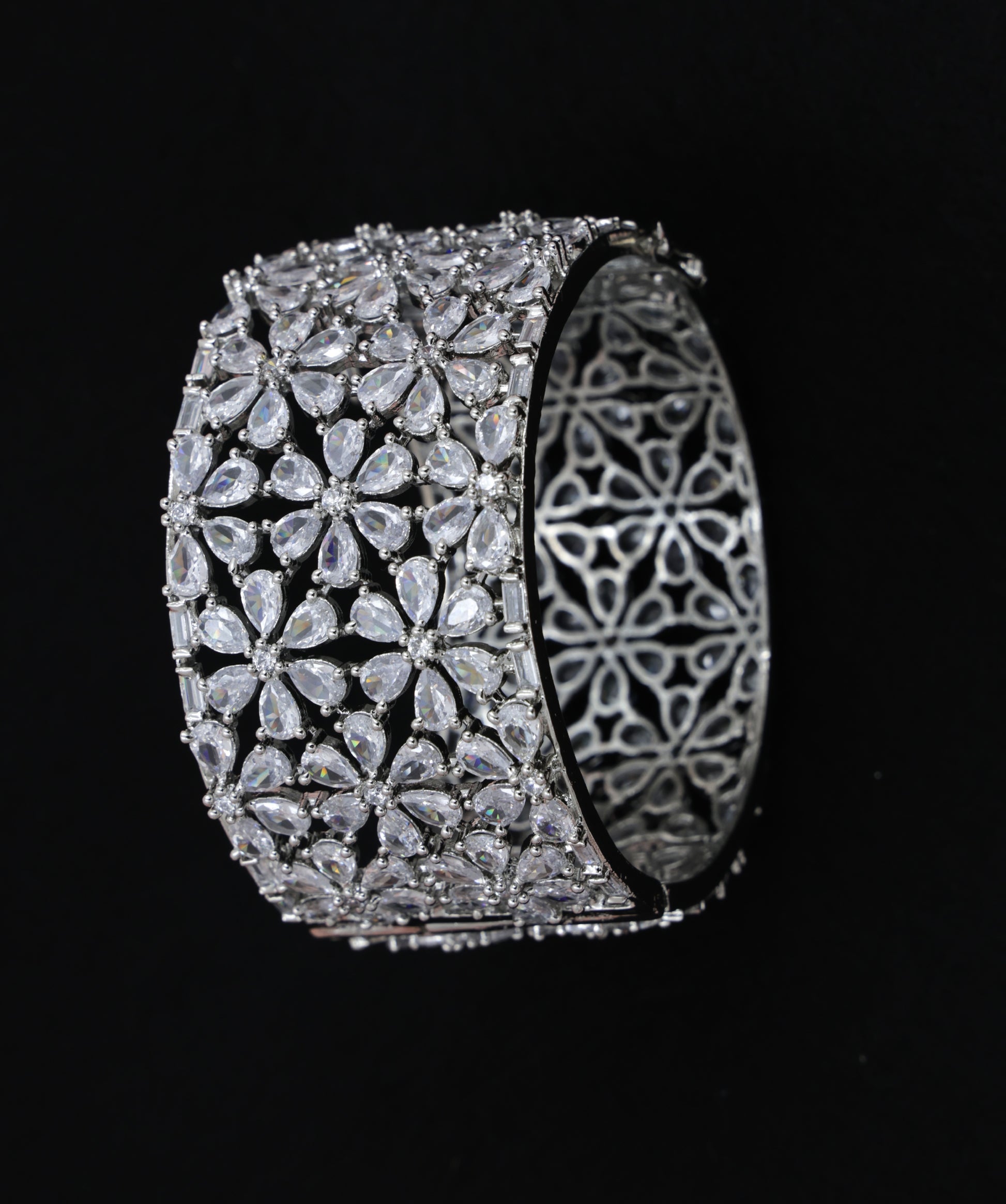 The intricate silver finish and airy openwork make it surprisingly light to wear while commanding a royal presence. Whether it's a celebration or a statement moment, this cuff brings the brilliance.