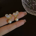 Crystal Bow & Pearl Drop Earrings