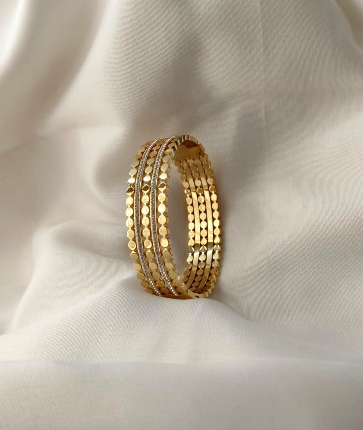 Step into the spotlight with the Dazura Bracelet, designed to dazzle with every move. Featuring intricate golden layers paired with radiant CZ stones, this bracelet is a true statement of style and luxury. A must-have for women who love chic, standout jewellery.