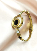 The golden bracelet band is adorned with alternating black enamel hearts and glimmering AD stones, offering both edge and sparkle. Its sleek, openable design ensures a comfortable fit while making it an effortless statement-maker. Designed for the woman whose aura commands attention — luminous, bold, and beautifully balanced.