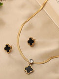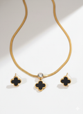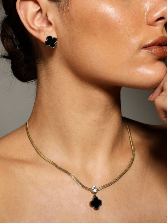 Elegant Black Clover Pendant Necklace with Gold Accents