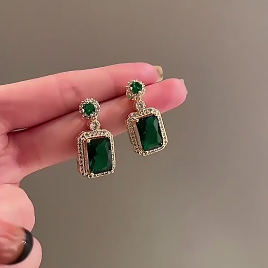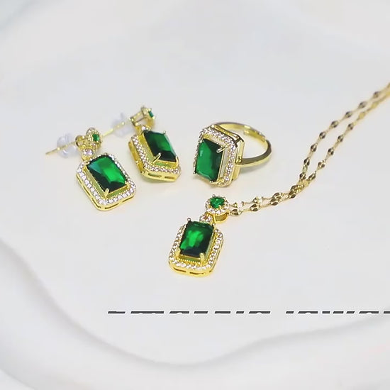 Turn heads with the elegant brilliance of the Emerald Edition from our Quadrate Rhinestone series. Featuring dazzling emerald-green rectangular stones set in gold-toned frames and surrounded by radiant rhinestones, this set brings together vintage royalty and modern finesse in one stunning package.