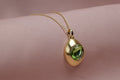 Featuring a mesmerizing olive-green crystal set in smooth matte gold plating, this pendant set radiates calm confidence and refined taste. The teardrop silhouette symbolizes grace, while the sparkling accents add just the right touch of glamour.