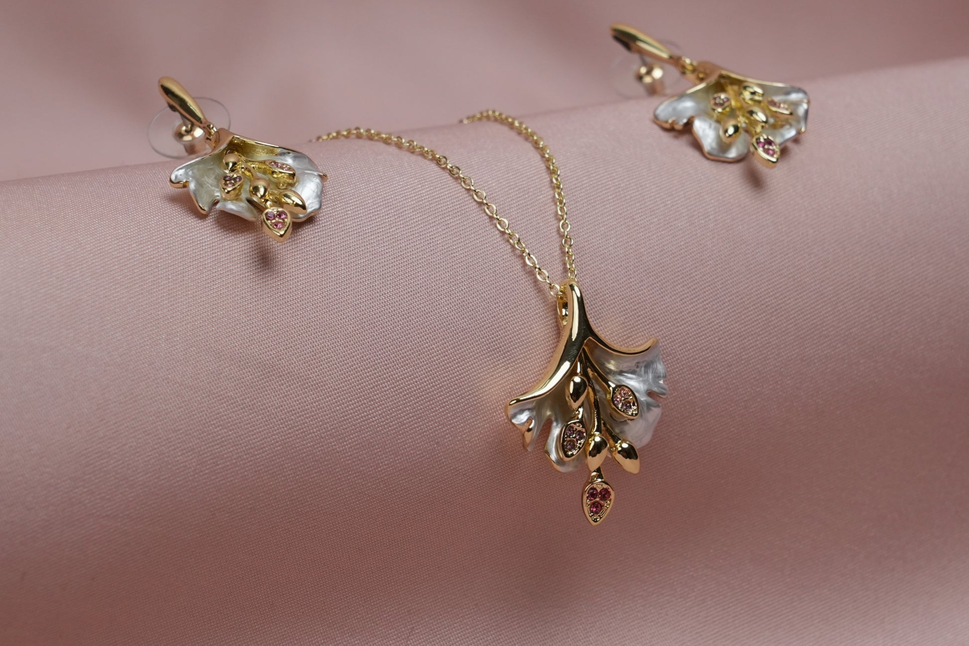Floral Grace Pendant & Earrings Set – Gold & Mother of Pearl