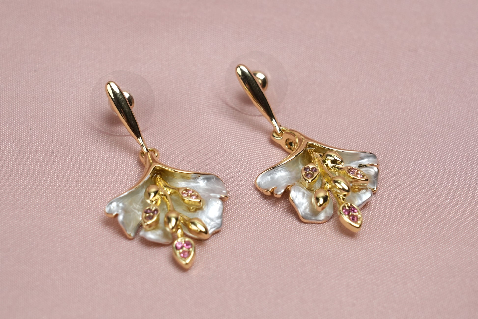 Elevate your look with this elegant floral jewelry set featuring a gold-toned finish, mother-of-pearl petals, and sparkling stones. Perfect for festive occasions, parties, or everyday sophistication.