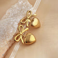 Charming, feminine, and full of love – our Gold Bow & Heart Drop Earrings are the perfect statement of sweet elegance. Featuring a delicate bow paired with a glossy puffed heart charm, these earrings bring a playful sparkle to every look. Whether it's brunch or date night, they’re here to steal hearts.