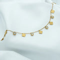Bring a touch of charm and sophistication to your look with this Golden Clover Charm Necklace. Featuring delicate four-leaf clover pendants and sparkling stone accents, this piece is perfect for adding subtle glamour to any outfit.