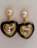 With a glossy black heart base, shimmering heart-shaped crystal center, and elegant pearl studs, these earrings are where retro glam meets modern edge. Perfect for styling up a brunch date, girls’ night out, or even your next reel!
