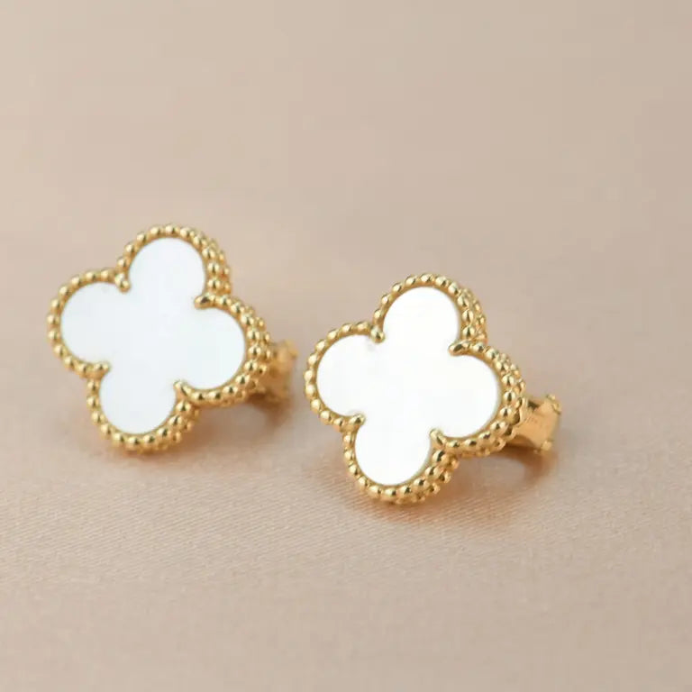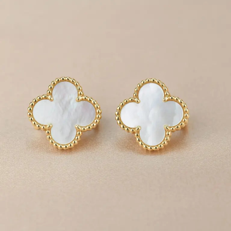 Classic meets contemporary in our Luna Clover Mother of Pearl Studs. With a delicate clover silhouette framed in radiant gold, and filled with luminous mother of pearl, these earrings bring a soft glow and refined elegance to your everyday style. Ideal for both minimalist lovers and luxury aficionados.