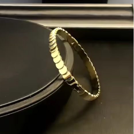 Step into subtle sophistication with the LuxeDisc Gold Bracelet from Bubble Aura. Featuring a seamless scallop-style design and a radiant gold-tone finish, this piece blends modern minimalism with everyday wearability.