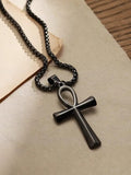 Men's Black Ankh Cross Necklace – Symbol of Eternal Life