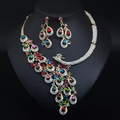 Step into the spotlight with our Royal Peacock necklace set – an opulent masterpiece adorned with cascading multicolor CZ stones in teardrop shapes, gracefully designed to mimic a peacock’s regal feathers. A true showstopper for grand occasions.