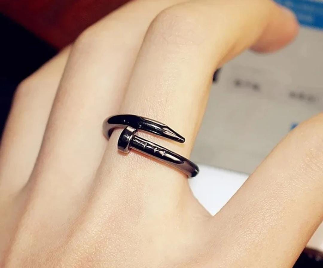 Power, precision, and polish — the Industrial Luxe Nail Ring is built for those who lead with bold style. This striking unisex piece blends raw industrial influence with modern minimalism, wrapped in a matte black finish for a stealthy, high-impact look.