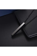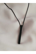 Unisex Matte Black Vertical Bar Pendant – Minimalist Chain Necklace