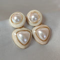 Make a bold yet elegant statement with our Vintage Pearl Duo Statement Earrings, where classic pearls meet modern geometric design. These earrings feature a stunning combination of circular and triangular pearl settings, framed in a glossy ivory enamel with golden accents that radiate luxury.