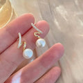 Where modern design meets timeless elegance. The Zig-Zag Pearl Drop Earrings bring a unique twist to your look — literally! A wave of gold adorned with shimmering zircons leads to a classic pearl drop, creating a style that’s both bold and refined.